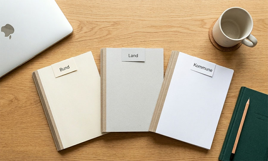 Steht die Anlagenentscheidung, geht es an die Programmwahl. In NRW greifen drei Förderebenen ineinander — Bund, Land und Kommune. Jede mit eigenen Regeln, Anträgen und Obergrenzen.